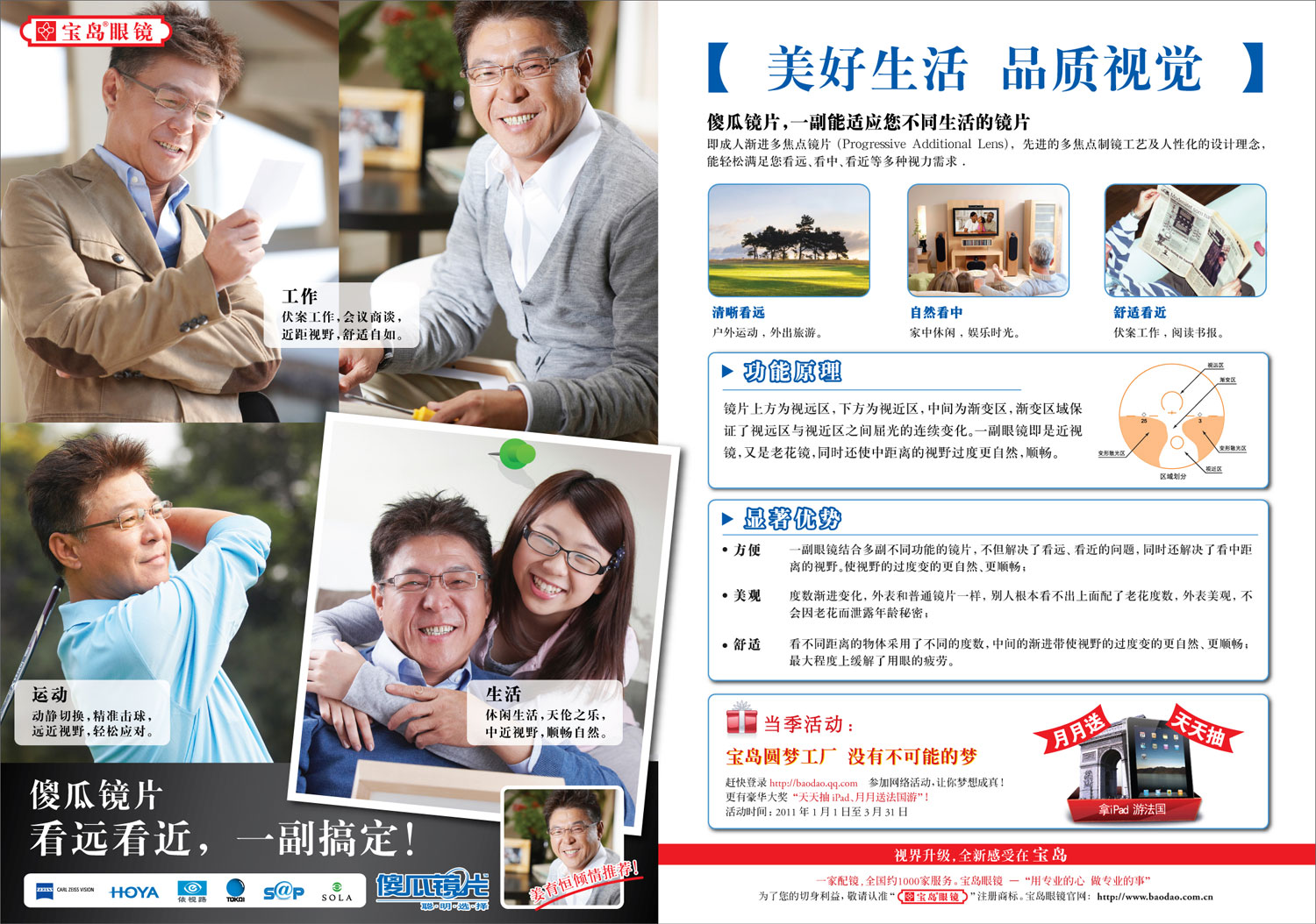 工作—伏案工作,会议商谈,近距视野,舒适自如。运动—动静切换,精准击球,远近视野,轻松应对。生活—休闲生活,天伦之乐,中近视野,顺畅自然。